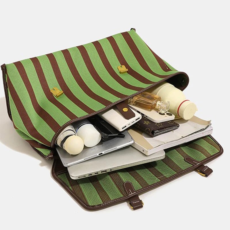Meet your favorite bag for your daily commute or short travels, featuring durable woven fabric, leather details, and gold-tone hardware, perfect for work, travel, or leisure.