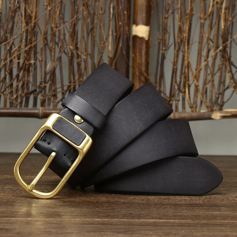 Crafted from fine cow leather, our belts feature a classic design with a sturdy gold buckle that ensures a perfect fit every time. No matter the occasion, let these belts bring out the confident man in you.