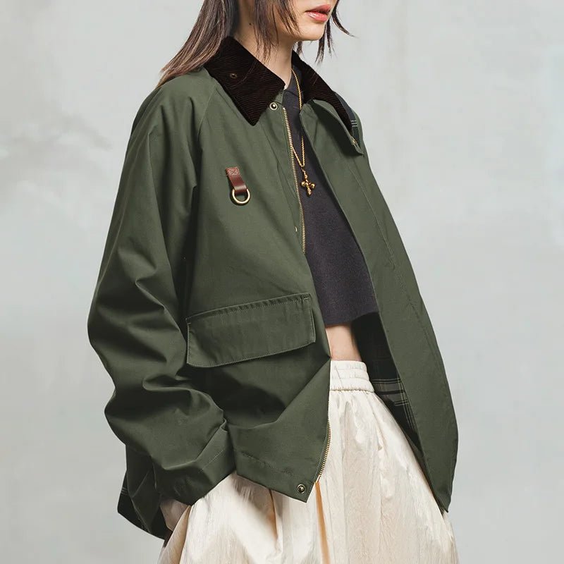 • Corduroy collar adds old-school workwear charm